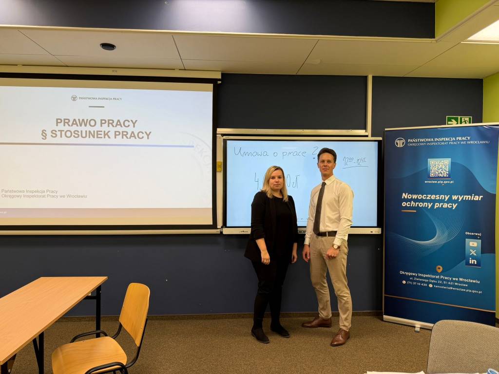 Pracownicy Okręgowego Inspektoratu Pracy we Wrocławiu, 14 listopada 2025 roku, wzięli udział w spotkaniu dla młodzieży ze szkół ponadpodstawowych pn.: „Ogarniam przyszłość!” współorganizowanym przez: Zakład Ubezpieczeń Społecznych Oddział we Wrocławiu, Uniwersytet Ekonomiczny we Wrocławiu, Okręgowy Inspektorat Pracy we Wrocławiu oraz Dolnośląski Wojewódzki Urząd Pracy.